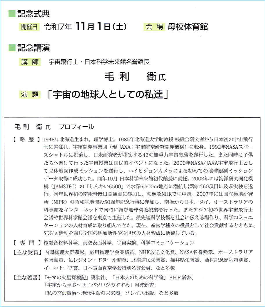 注 式典は学校の体育館の収容人数の関係で学校関係者と招待者のみで開催されます。